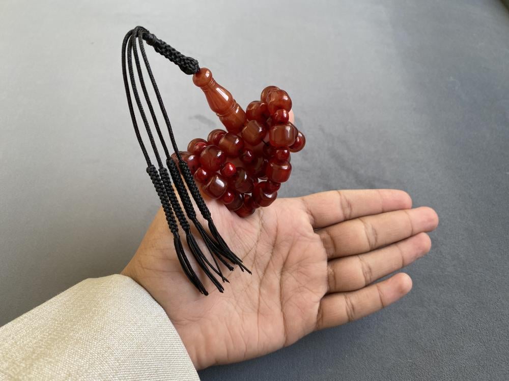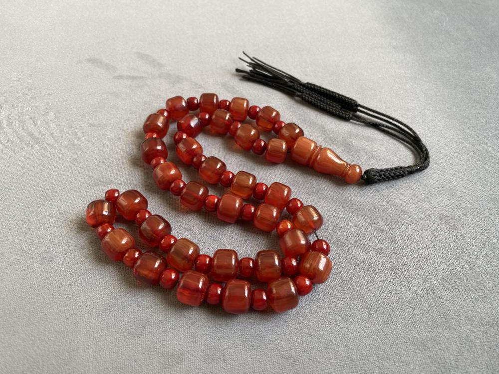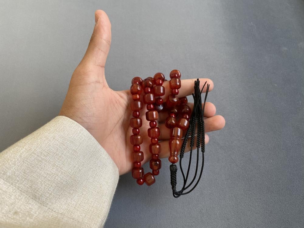 سبحة الفاتوران بتصميم فريد من الفاتوران العسلي الغامق مع فواصل من السندلس الأحمر القاني، لتكون سبحة فريدة بتباين ألوانها و تفاصيلها.